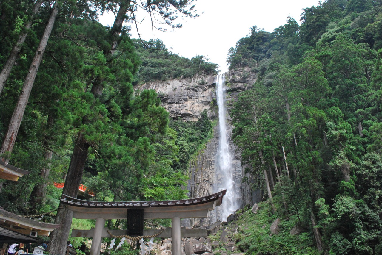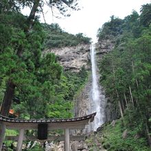 高さ日本一、日本三大瀑布の1つ、那智の滝を御神体に祀る飛瀧神社。鳥居越しに拝むその滝筋はなんとも神聖な力を放っています。300円納めるとさらに滝に近いお滝拝所へ上ることができます。さらに100円で延命長寿の滝の水をいただくことができます。
