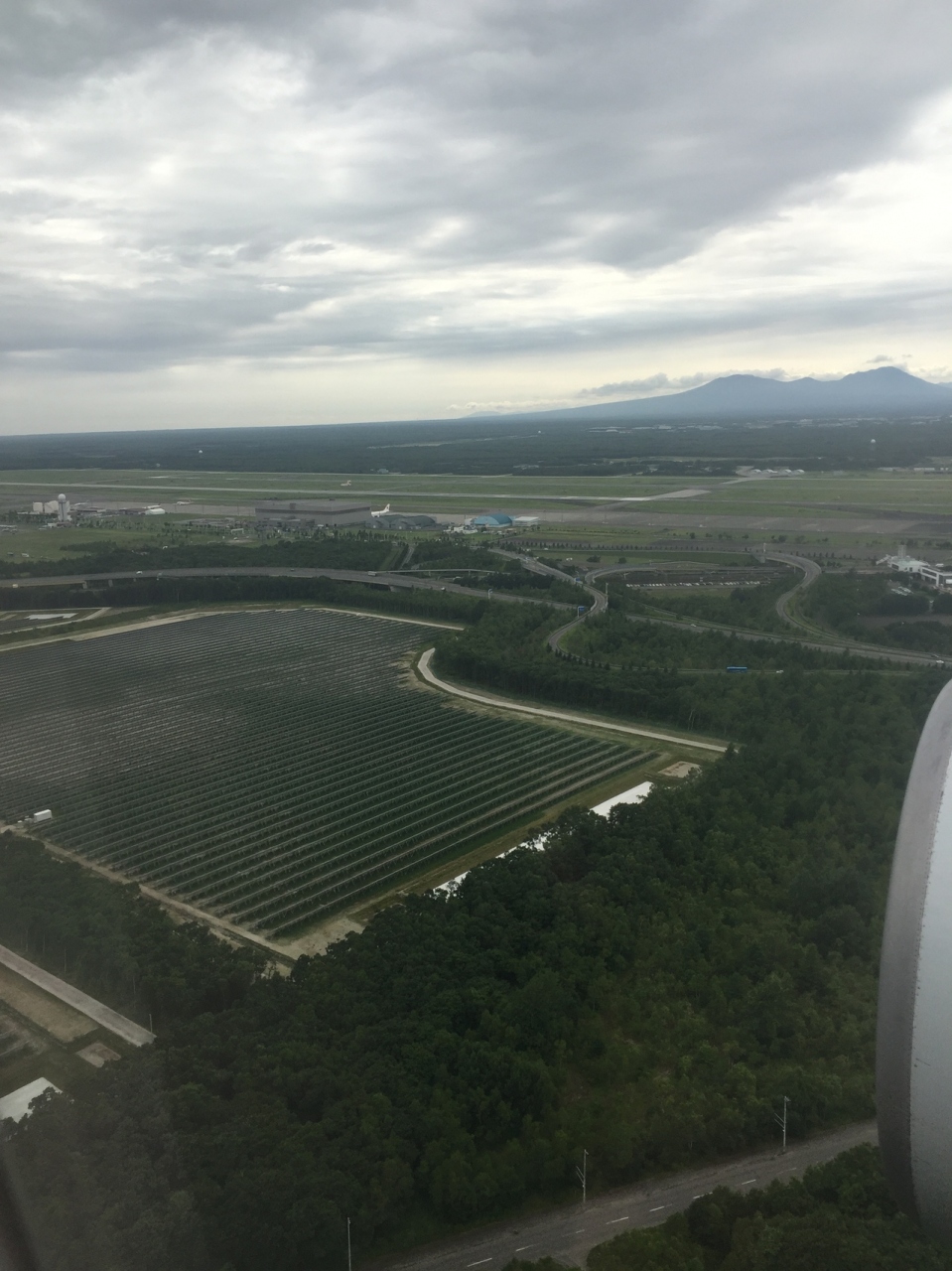 新千歳空港に着陸する直前、隣の航空自衛隊に政府専用機らしきものが見えました(写真中央あたり、尾翼に日の丸)。