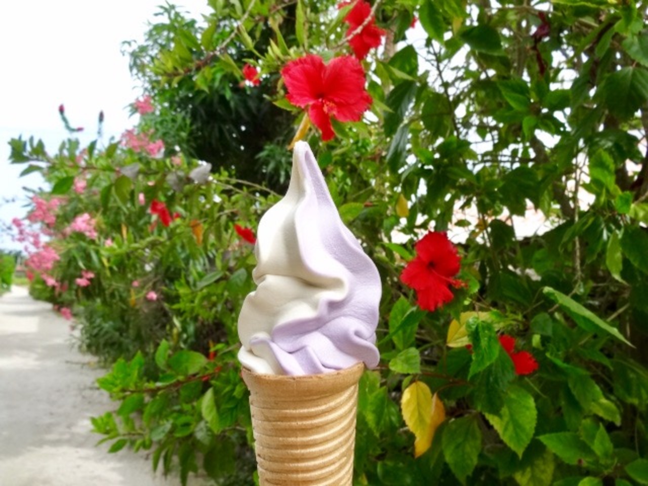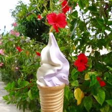 併設しているカフェのソフトクリーム、紅芋と黒糖のミックスがおいしかったです。