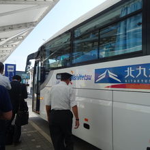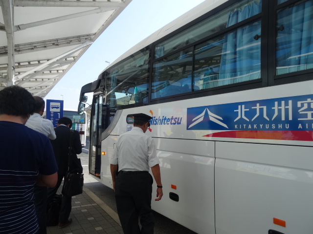 北九州空港は、バックが小倉、出島空港と言う事もあるのか自家用車で来る人が他の地方空港に比べて少ないせいかバスを使うお客さんが多くとても混み合っています。もう少し本数を増やしていただくとありがたいのですが。直行便は40分弱、市内バス停経由は、50分強。630円でPASMOなどが使えるのは、便利です。
