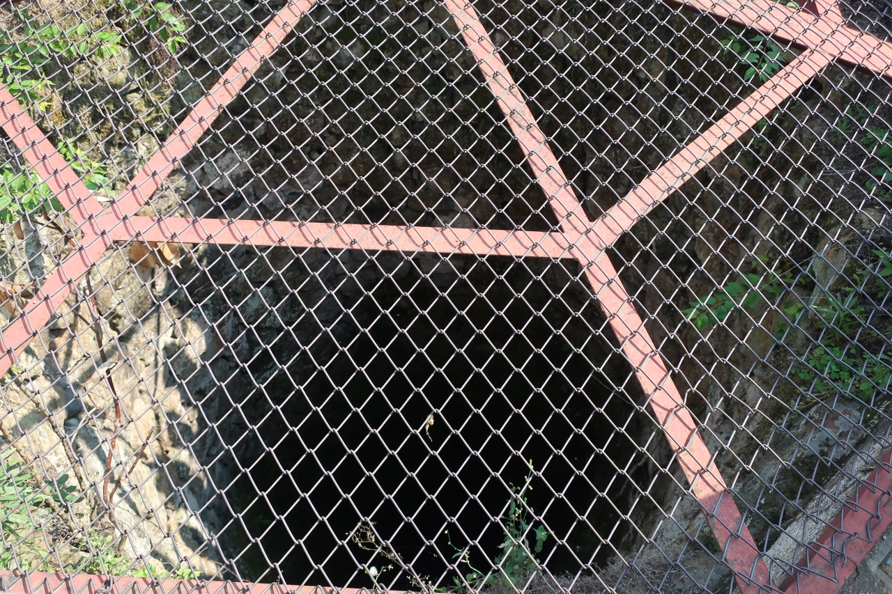 網の張られた井戸を覗いて見ても暗くて良く見えません。