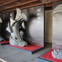 また、門の左手には明治、昭和、平成各時代の鯱が展示されているのも必見です。明治期のものが一番精緻に見えます。