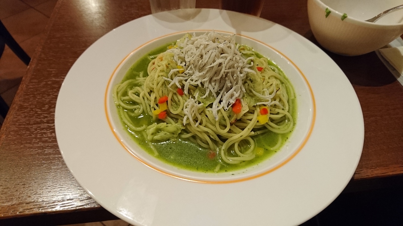 ランチはパスタとサラダとドリンクで880円。日比谷ではとてもリ-ズナブルに感じました。