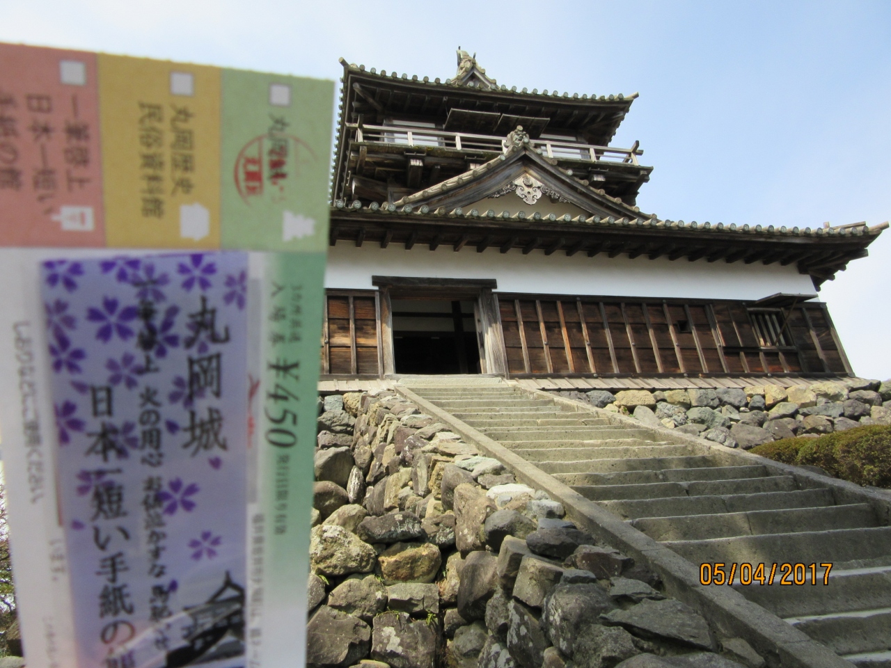 福井駅からバスで約40分、640円。木造で古さが伝わる素朴な城。桜まつりの期間で桜が美しかった。丸岡城と【丸岡城資料館】【一筆啓上館】の共通入場券450円、セットで見学する事をおススメします。