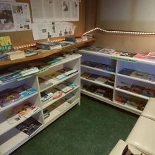 内装もレトロで良い感じ、ちょっとした資料コーナーなどもあります。