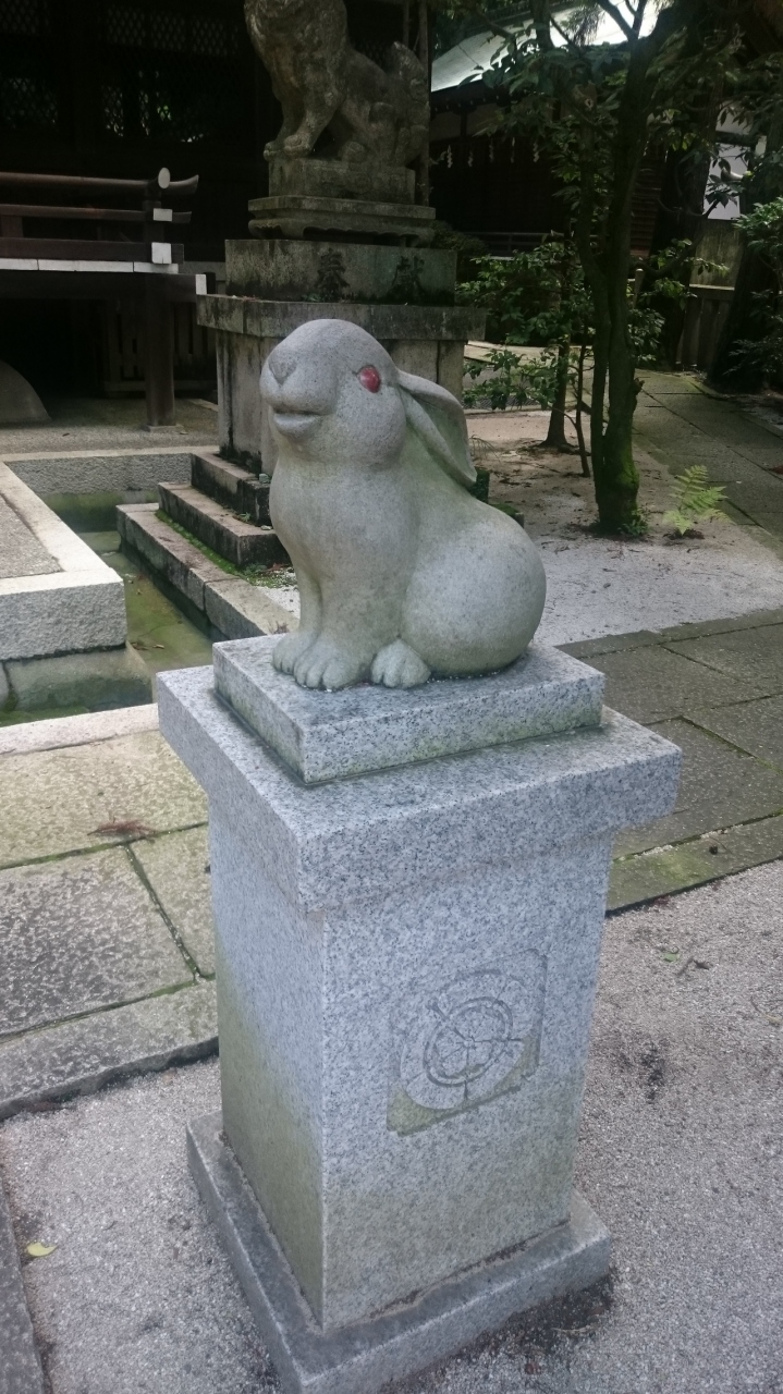 子宝祈願で有名ということでしたが、ここはウサギ神社としても有名らしく、狛犬ならぬ狛ウサギがいて可愛かったです。