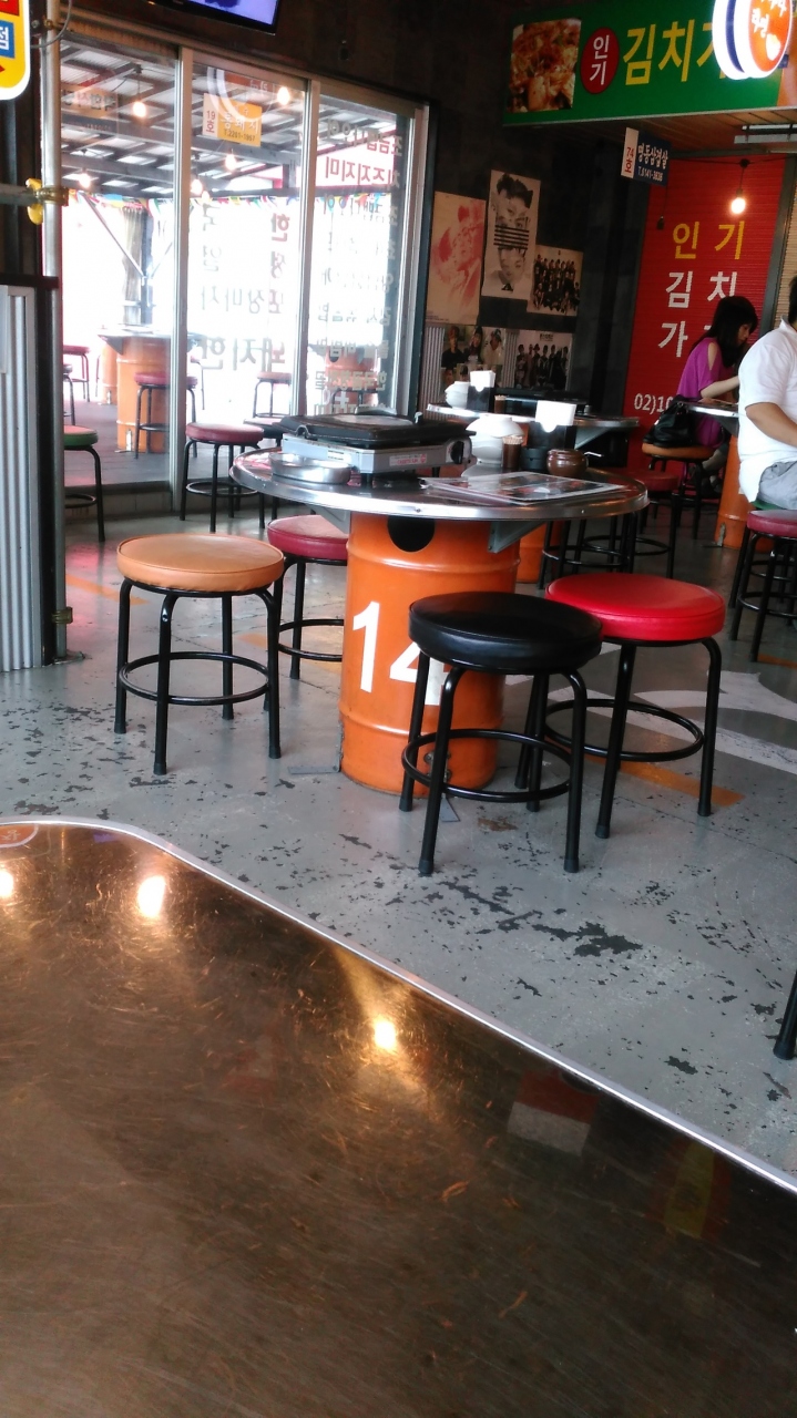 映画館の近くにある韓国料理店。店内は韓国の焼肉屋の雰囲気です。お箸やスプーンも韓国食堂そのまま。食事中もテレビで韓国の歌番組が放映されていました。