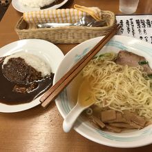 カレーとラーメンのセットを頼むと、最初にラーメンが運ばれてきて、少しするとカレーが運ばれてきます。