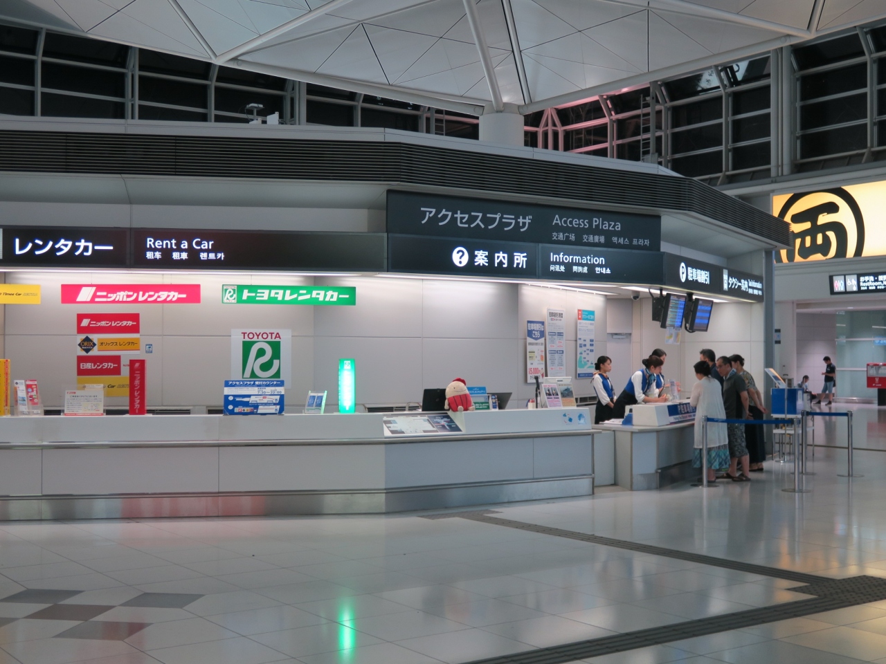 セントレアには3か所案内所があって、まずは空港駅と空港ビルの接続ホール中央にあるアクセスプラザ、空港ビルの各航空会社カウンターのある3F出発ロビーを入った所。そして到着ロビーで国際線、国内線の各出口間のちょうど中央に1か所あります。