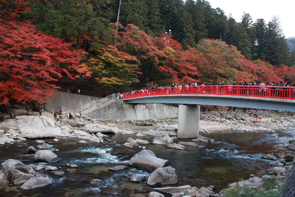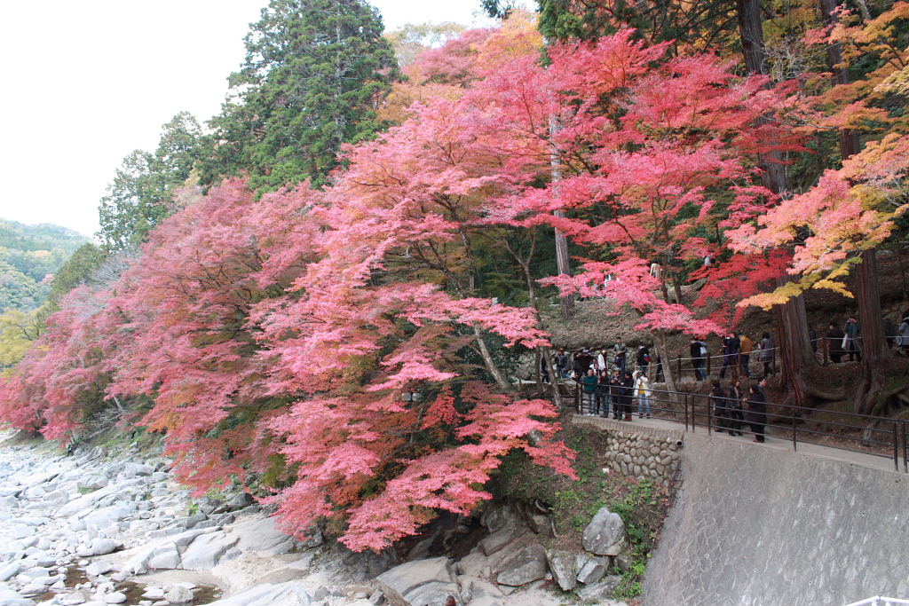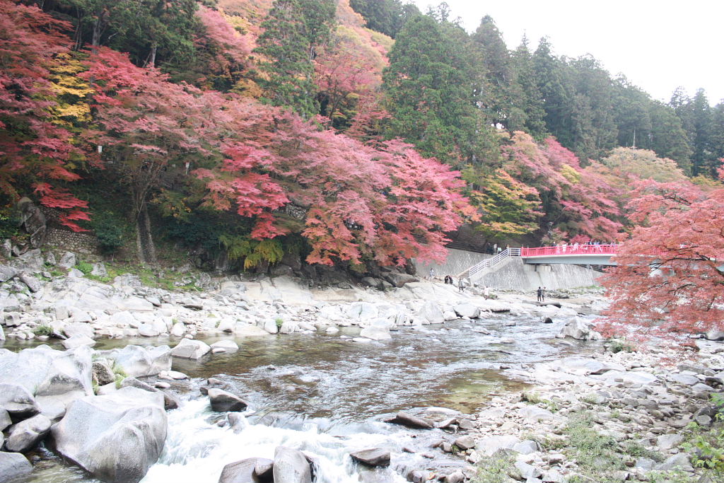 香嵐渓は、愛知県豊田市足助町にある矢作川支流巴川がつくる渓谷で、愛知高原国定公園の一角に当たるそうです。