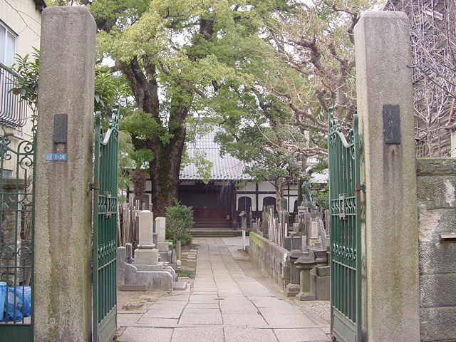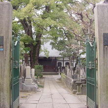 門を入ると、本堂までの空間に無数のお墓が。そしてその中に大きな木があって、本堂と合わせた眺めが印象的でした。本堂もこぢんまりとしながらも、歴史を感じさせる造りでした。江戸時代の幕臣であった高橋泥舟のお墓が史蹟になっています。