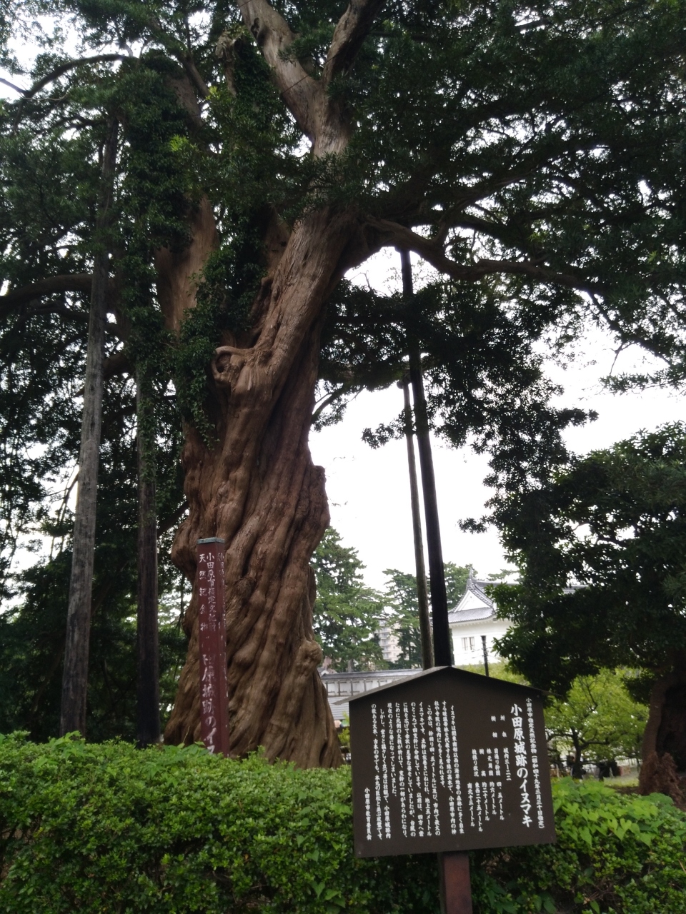 小田原城の城址公園内にある、小田原市天然記念物だそうです。場所は天守閣手前にある常盤木門のちょっと前にあります。大きなくねっととした大木ですので目立ちます。高さは約20メートルで幹周りが4.5メートルとの事です。なんでも小田原のパワースポットらしいです。