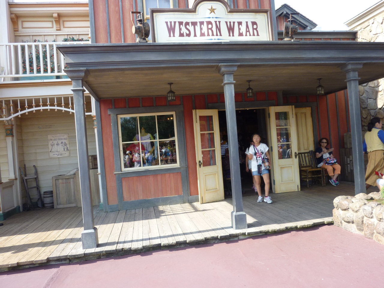 名前の通り、西部劇風の衣装が揃うお店です。キャラクターがしっかり入ったカーボーイハットから、普通のTシャツにカーボーイ姿のミッキーがプリントされたモノまで、必ずしもカーボーイ風のコスチュームばかりではありません。勿論、西部劇風のジャケットなんかもあるので、自分がガンマンになった気分になりたくてもこのお店はおすすめです。