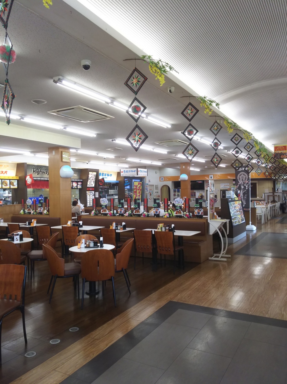 養老サービスエリアに立ち寄りました。入り口にでっかいメロンパンの見本が置いてありインパクトを受けました。ただ、一人で食べると飽きてしまいそうだったので買いませんでした。値段もそこそこしてました。フードコートは充実しており、休憩しやすいサービスエリアと感じました。