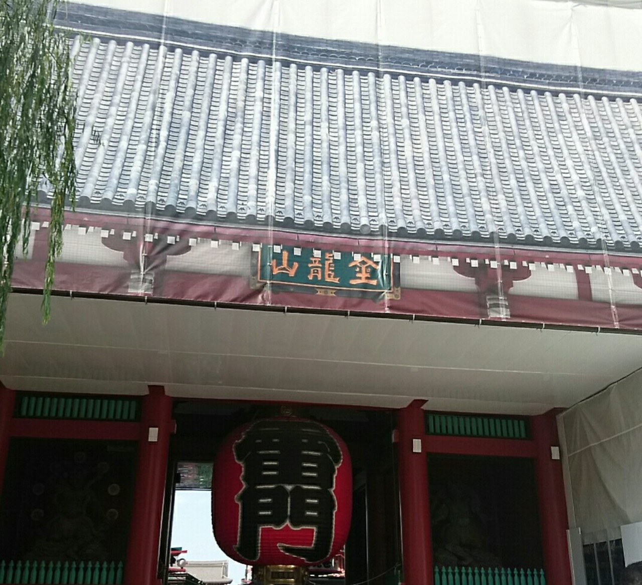 せっかくの雷門ですが、現在は工事中のため全貌を見ることができません。それでも、門の下にある大提灯は見ることができます。しかも、気を利かせて、工事中の外観には門の絵が描かれていますので、遠目には本物の雷門があるように見えます。