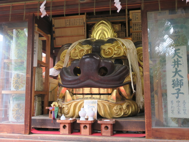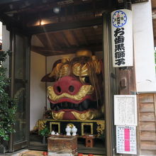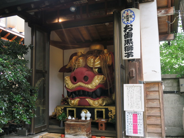 入口を入ると右手には天井大獅子が、左手にはお歯黒獅子が控えており、築地を守っているかの如く!