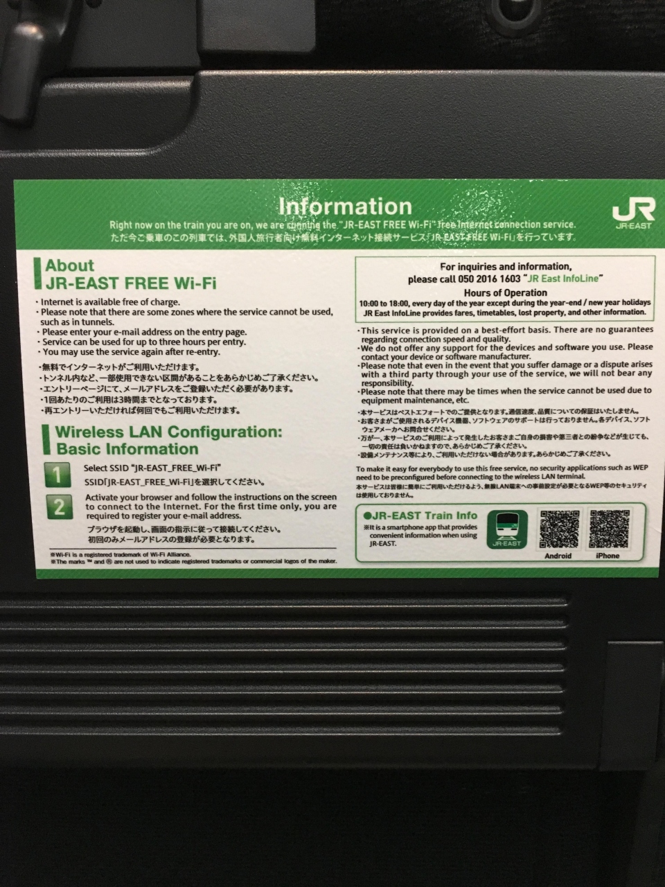 社内のWifiですが、接続後しばらくすると切れるのが玉に瑕ですかね。