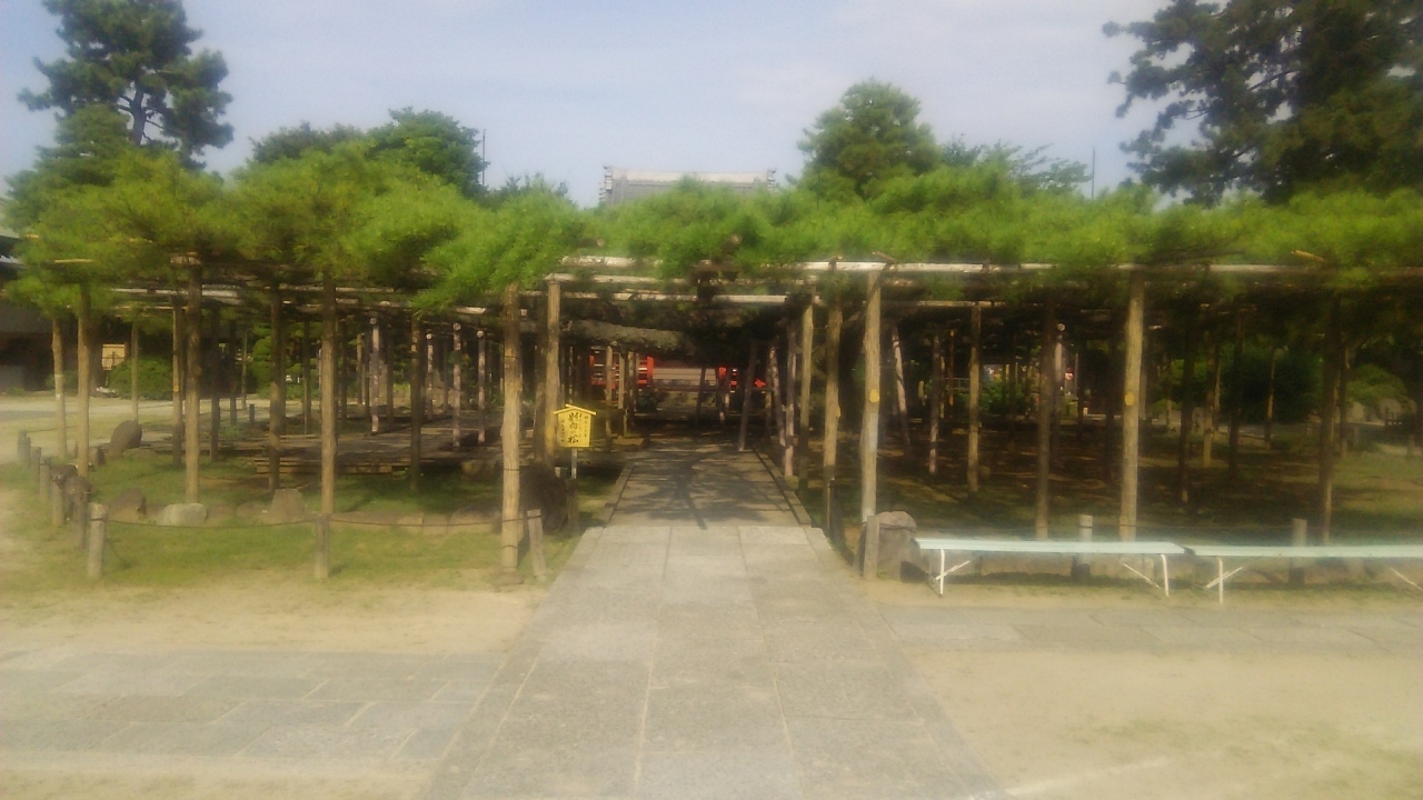 小岩不動で有名な善養寺の境内、山門から入って正面にある松の木。1本の松の木なのに、まるで藤棚のように30メートル四方位に広がっている。日本一の広がり方らしいが、それだけでなく幹の太さと言い葉の茂り方と言い美しい。