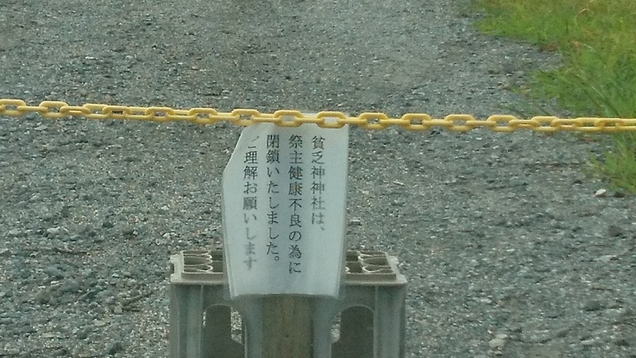 今回で二回目となる貧乏神神社でしたが、なんとその場所は更地になり金の鳥居すらない。場所は間違いないので、移転したのかと思いましたが、そうではなく、神主さんの体調不良により閉鎖されたとあります。