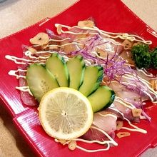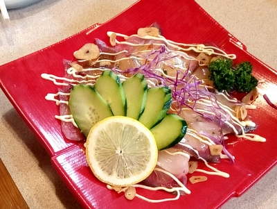 本日の肴のカルパッチョはハマチでした。