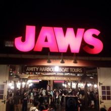 夜の方が空いていて30分待たないで乗ることができました。20人乗り位の船に乗って進みます。ガイドさんが1人ついているのですが、ガイドさんの話し方が面白かったです。夜の方が楽しいかもしれません。ジョーズも暗いので何処から出てくるかわからないので迫力があり、炎もホントに熱かったです。