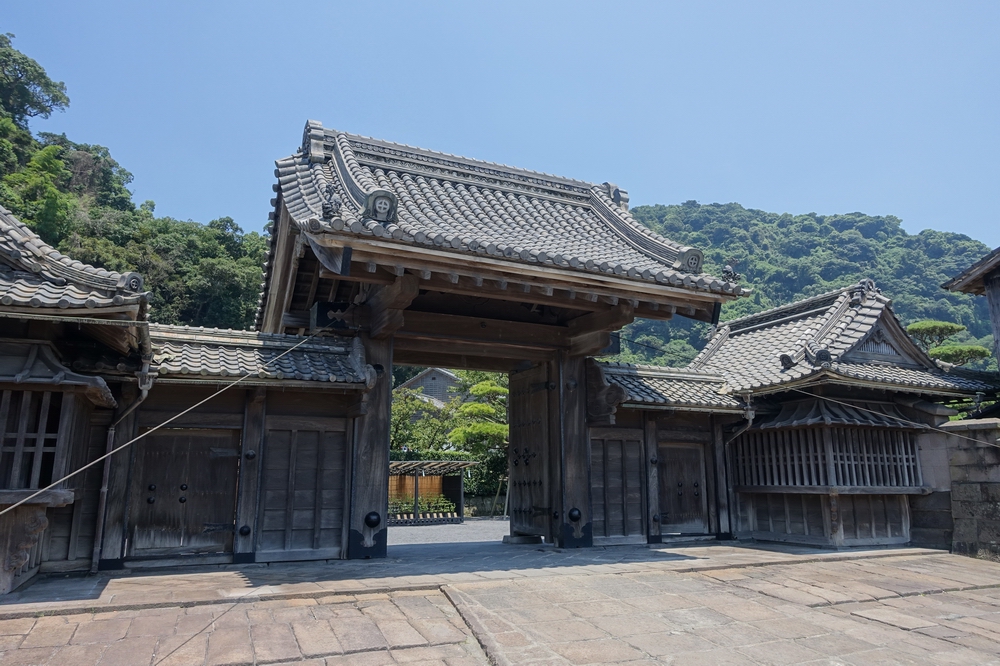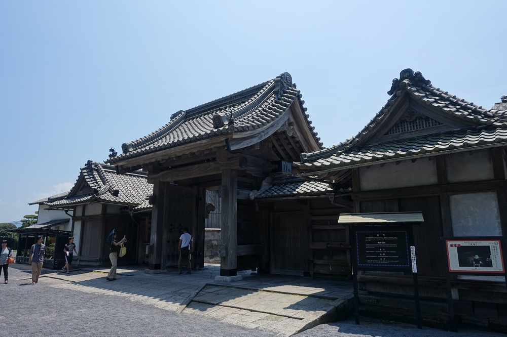 正門らしい立派な門構え。豪華さとかはなく渋いところがまたいいですね。屋根瓦に島津家の家紋も見えます。多くの人が記念写真を撮っていました。大河ドラマ「篤姫」のロケも行われたそうです。
