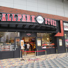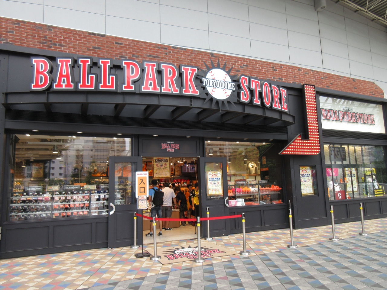 東京ドームにある野球殿堂博物館の隣に建つ店舗です。読売ジャイアンツの選手名と背番号が入ったユニフォームやシャツ、タオル、ジャビット人形、雑貨類、応援グッズなどを中心に、他球団のユニフォームも売っています。1人で袋一杯買い込む人や、同じグッズをいくつも買っていく人も見られます。地方からドームを訪れた人が、東京の土産物として購入していくのかもしれません。開店と同時に多くのお客さんが入っているのが印象的でした。