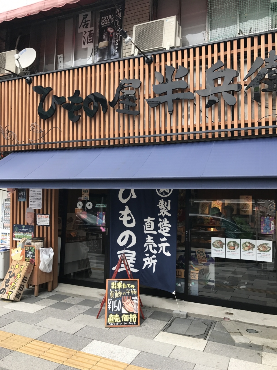 小田原駅前にある、ひもの屋半兵衛。一枚一枚全ての魚を手開きで加工し、塩漬けし、干している大変手間ひまかかったひものを販売しています。真鯵が一枚140円とリーズナブルなのも人気があるのがよくわかります。