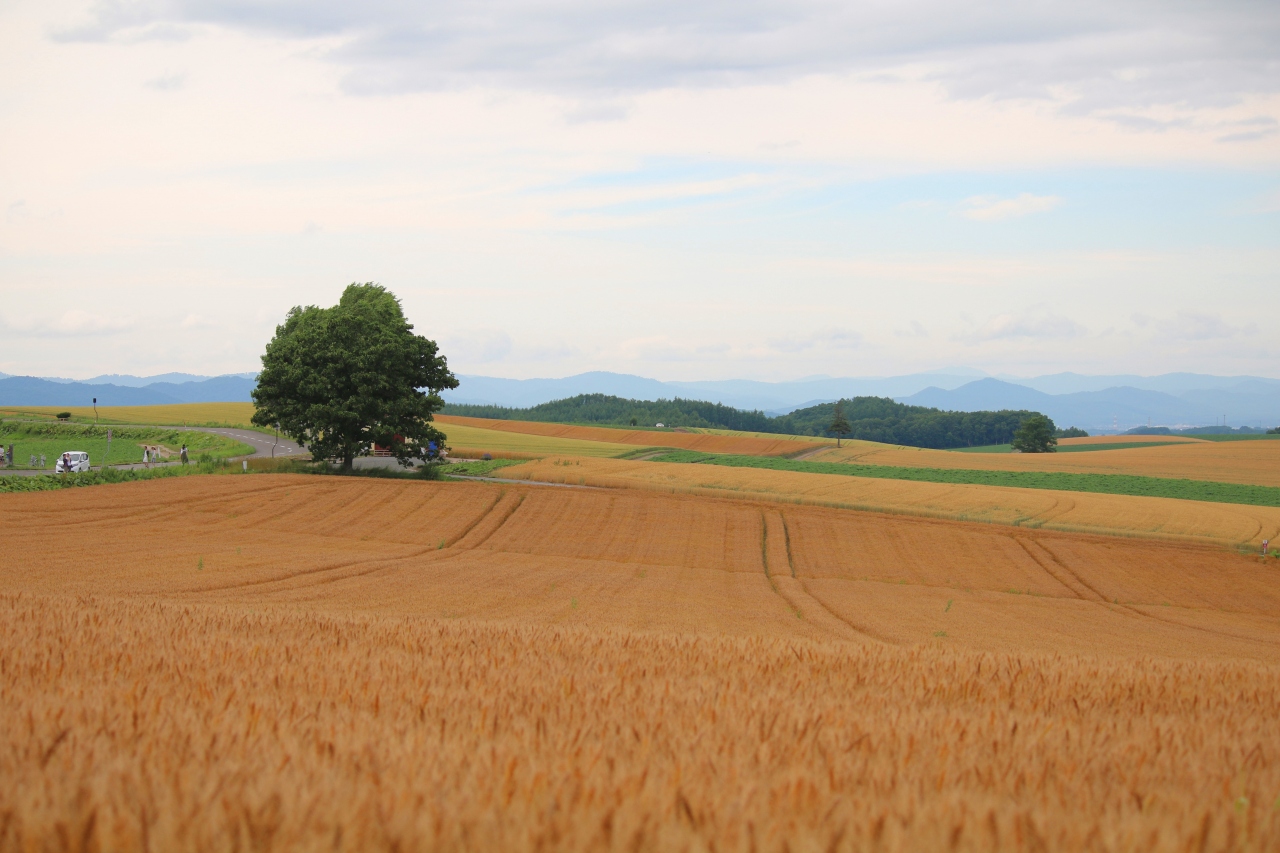 一面の小麦畑の中に佇む木々です。両親と子の木以外にもすぐ隣に木が2~3本生えていて、以前見た姿とは変わっていました。木そのものは大したことなかったですが、黄色に色づいた小麦畑の美しさがとても印象的でした。
