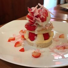 あらこんなところに喫茶店が。そんなトアウエストの奥地にあるお店で評判のスイーツをいただきました。登場して華やかさに驚愕です。フルーツがてんこ盛りです。メニューとかほかの雑誌の誌面を切り抜いたりしてる手作り感満載でそれが妙にアットホームです。