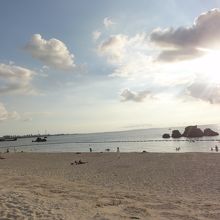 夕方、孫と貝殻拾いと散歩に行きました。海岸の遊泳許可区域には監視員もいました。すぐ近くに安良波公園があり、海岸だけでなく遊具で子供を遊ばせることも出来ました。公園内に更衣室やシャワー、足洗い場もあり便利です。