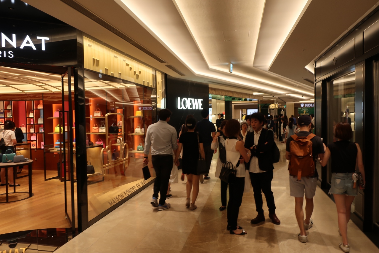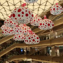 店内に入ると大きな吹き抜けがあり、上部には草間彌生のオブジェがぶら下がり、豪華な造りとなっています。入っているお店には高級店や、日本初のお店が多く入っており、1回見ただけでは、見切れない程広い施設です。