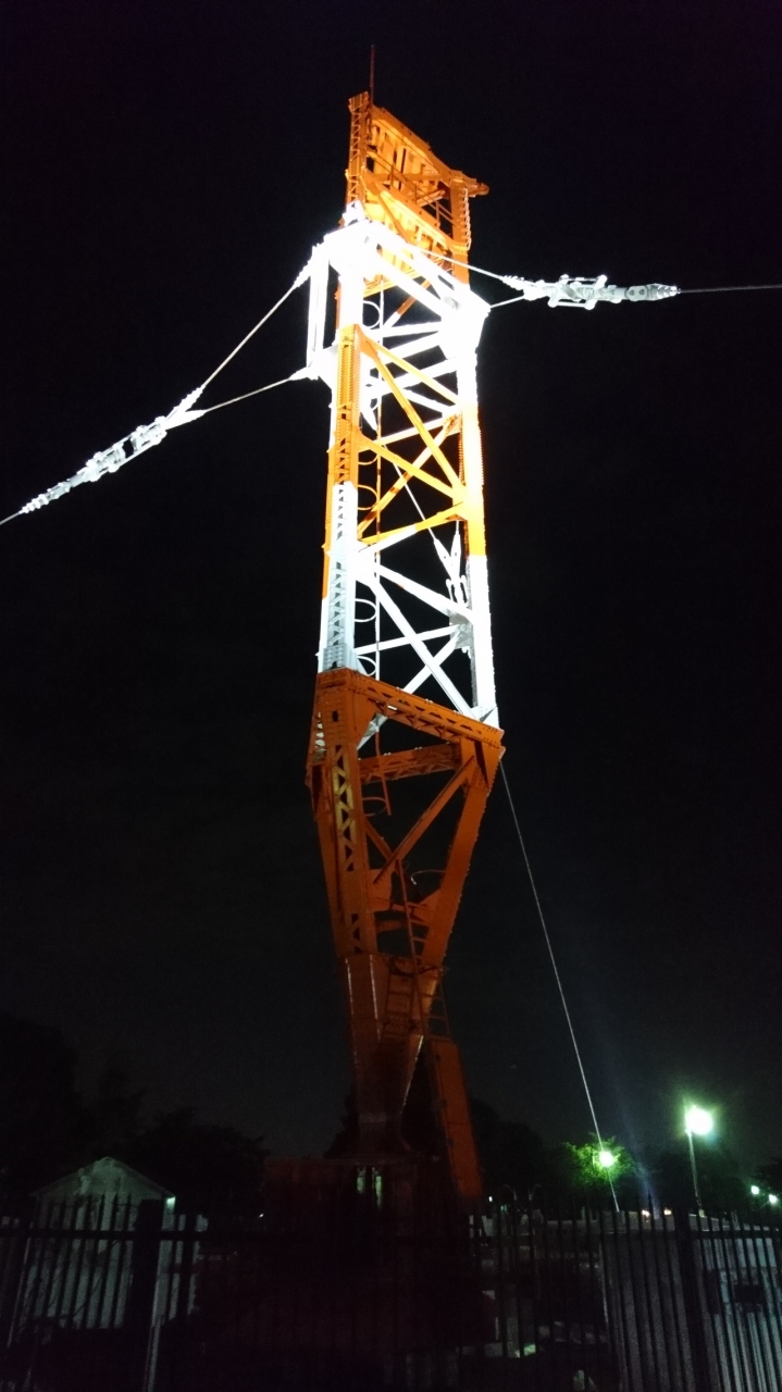 依佐美送信所記念館の鉄塔がライトアップされているので行ってみました。当然、内部の資料館はやっていませんが、鉄塔のライトアップもなかなか綺麗です。