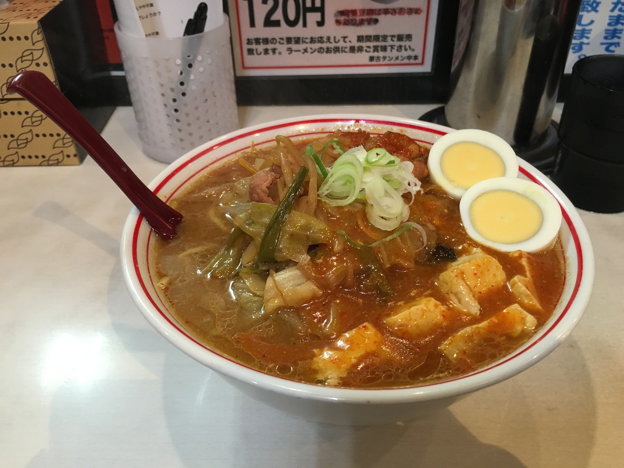 町田にある中本へ行ってきました。小田急の北口?からは近いかな。この日は体調がイマイチだったのでベーシックな蒙古タンメンをチョイス。結局食べ始めるとやっぱり美味いですね~!!いつもの五目味噌タンメンに比べたら辛さパワーは低いものの、高いトータルバランスの一品です。