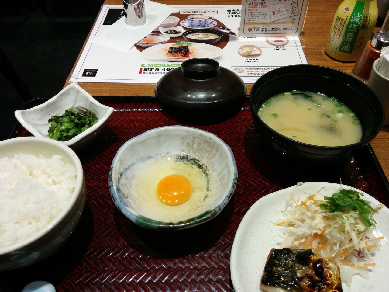 店員さんに朝食の定食があるか確認すると、午前11時までは朝定の時間帯とのことでした。