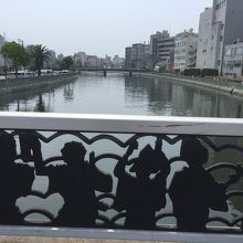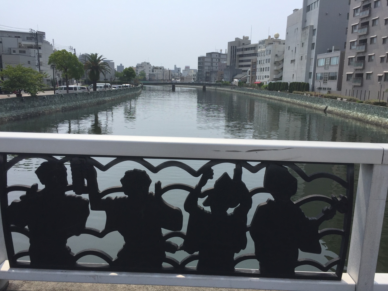 阿波おどりが開催されると、この橋はそのルートになるそうで、欄干のデザインも阿波おどりをモチーフとしたものでした。