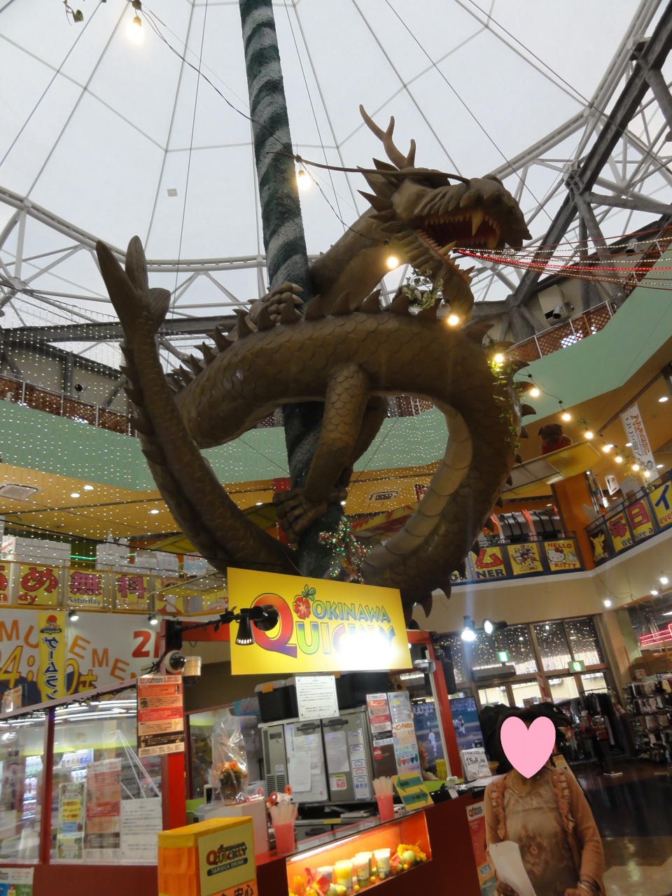 ここなら駐車場の空きがあるかもと行ったら運良く出る車がありました。美浜アメリカンヴィレッジにあるゲームとショッピングの施設、店内の中心にシンボルのドラゴンがあります。その下にスィーツスタンド、100均のセリア、ゲームセンター、ちんすこう等沖縄物産の土産物店と雑貨屋さんがありました。孫のお目当てはガチャガチャで、欲しいものが見つけられました。