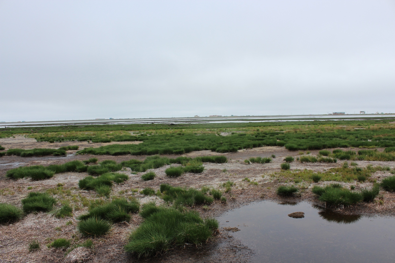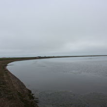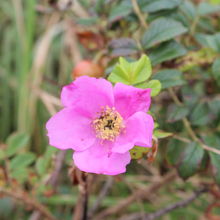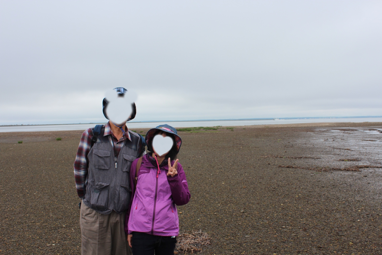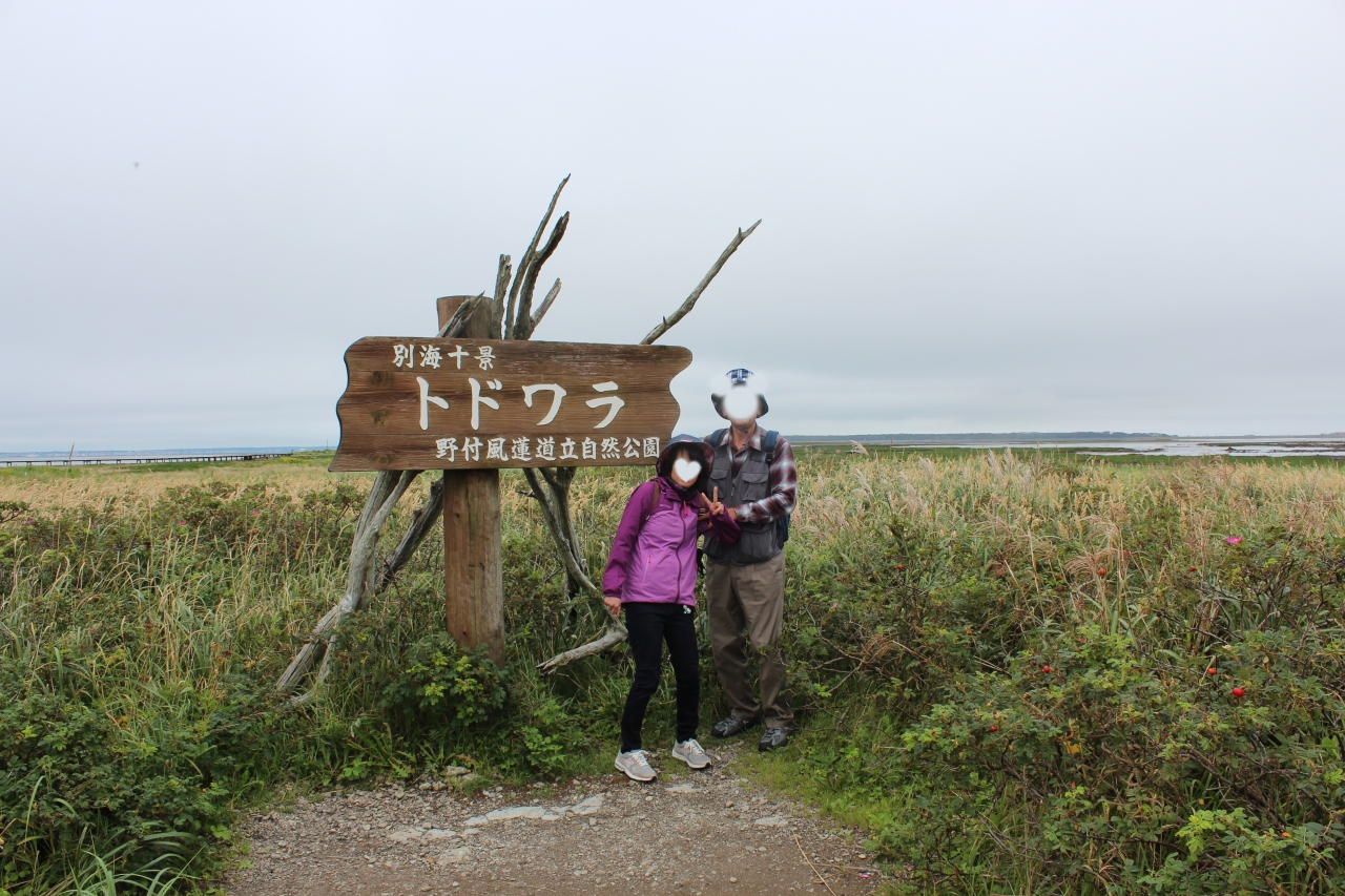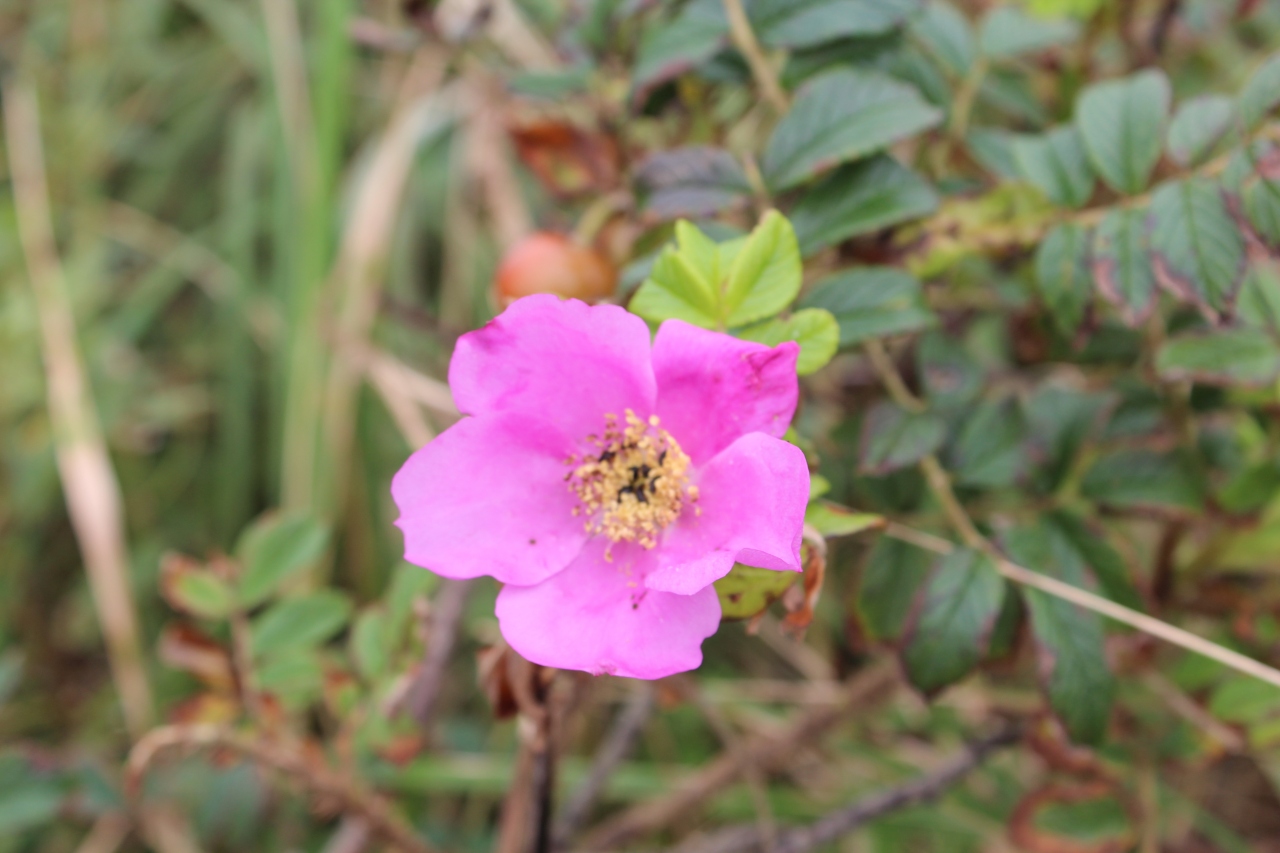 尾岱沼(おだいとう)から観光船で野付半島トドワラまで約35分でした。途中運良く野生のアザラシに遭遇。トドワラからトドワラ船着き場から野付半島ネイチャーセンターまでをゆっくりとしたペースで50分ほど歩きました。どんよりとした曇り空でしたが、立ち枯れたトドマツとピンクの花、赤い実のハマナスが対照的で大変印象的でした。