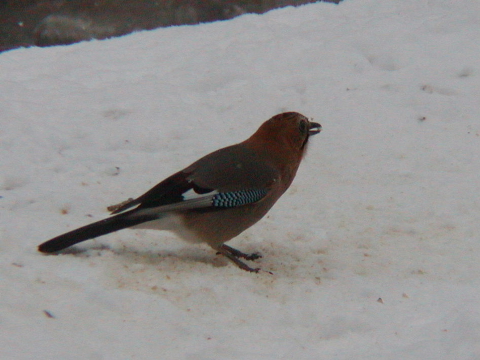 ミヤマカケスは、北海道だけで見られるカケスの亜種で、本州で見られるカケスとの相違は頭部が茶色なので識別は容易です。