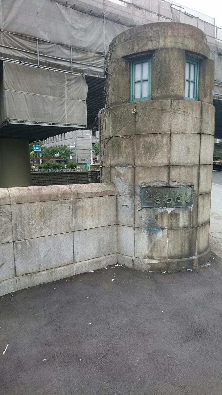 東京駅八重洲口から外堀通りを北に向かうと、一石橋の先に常盤橋がありました。もともと江戸時代にあった橋は少し上流にあり常磐橋といいます。そちらは人専用の橋として利用されていますが、現在は工事中でした。一方、常盤橋は交通量も多く、石造りの重厚な橋でした。