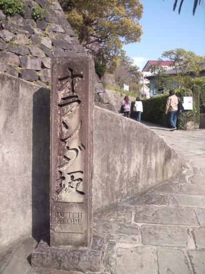 石畳で出来た坂のオランダ坂。オランダ坂と書いて無かったら分からなかったかもしれません。オランダ坂を通り過ぎて道なりに行くとグラバー園の方に行けます。ただの坂なので観光地という感じでは無いかも知れません。