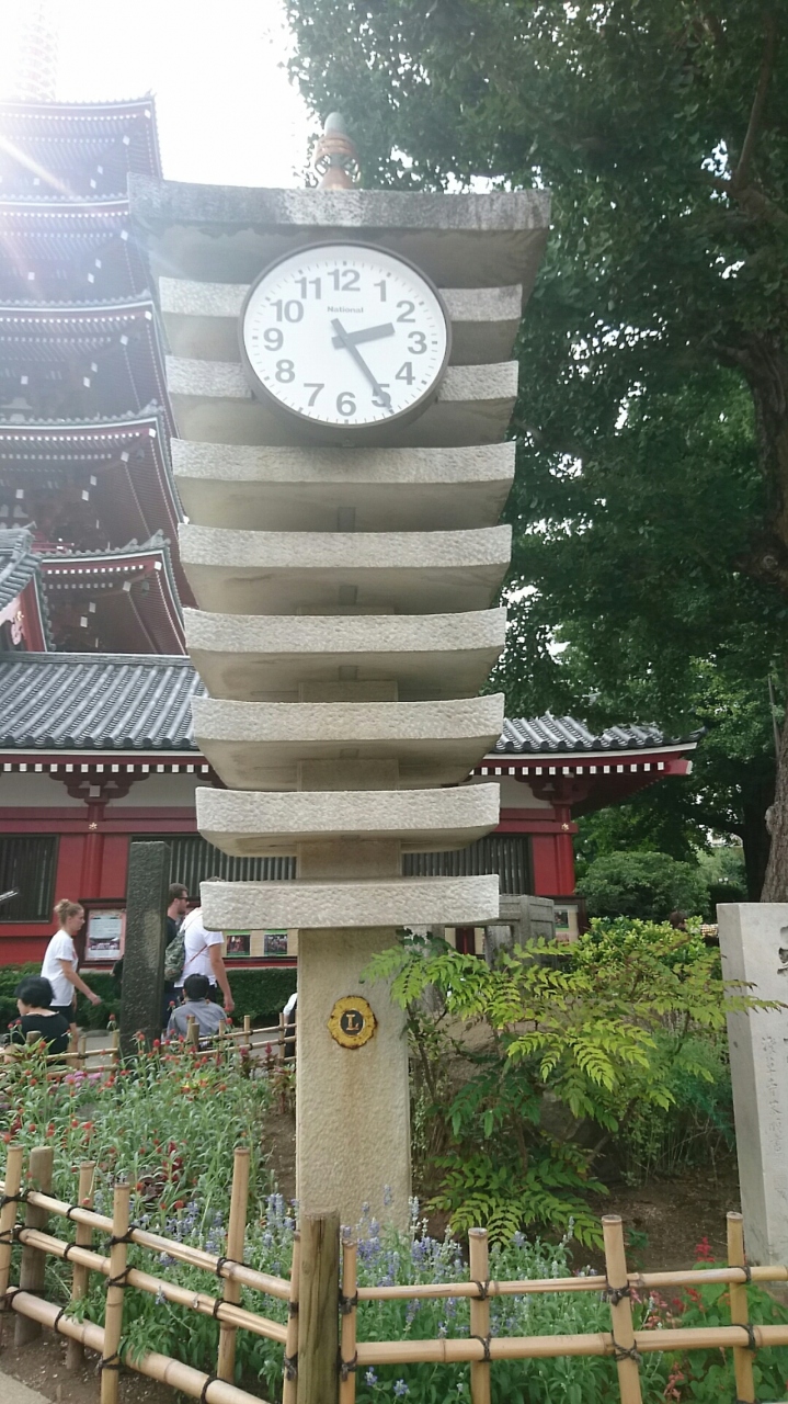 浅草寺の五重塔の前に石塔の上に乗った時計がありました。広島県にある平和の時計とは異なって、ライオンズクラブが寄贈したもので、史跡的な価値がるわけではありませんが、「平和の時計」と呼ぶそうです。浅草寺の境内には色々なものがあるということを、改めて感じました。