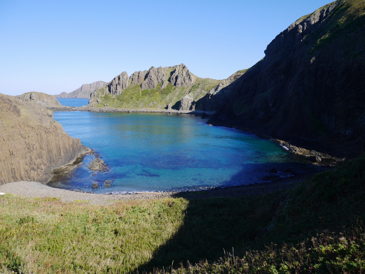 そんな海の入江が弧を描いてます。空も青いし、いつまでも