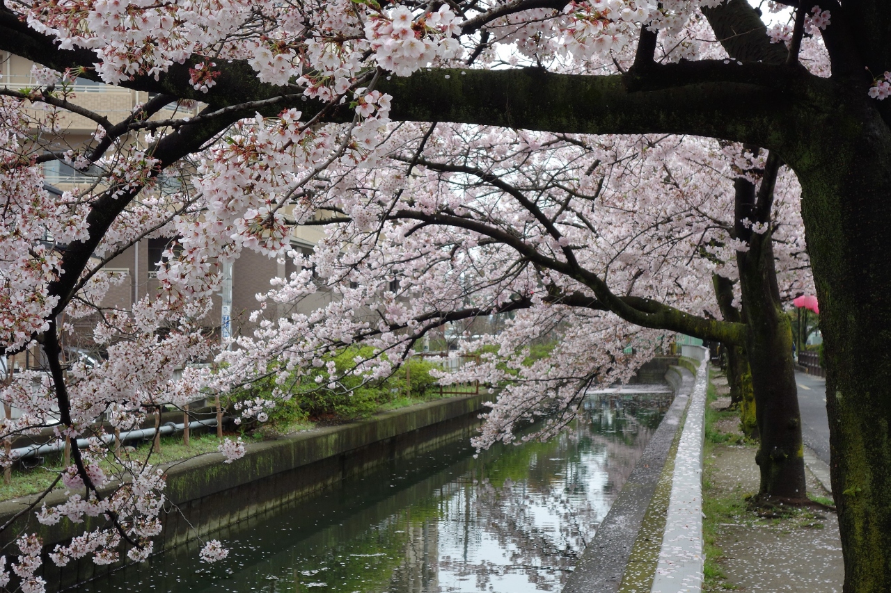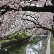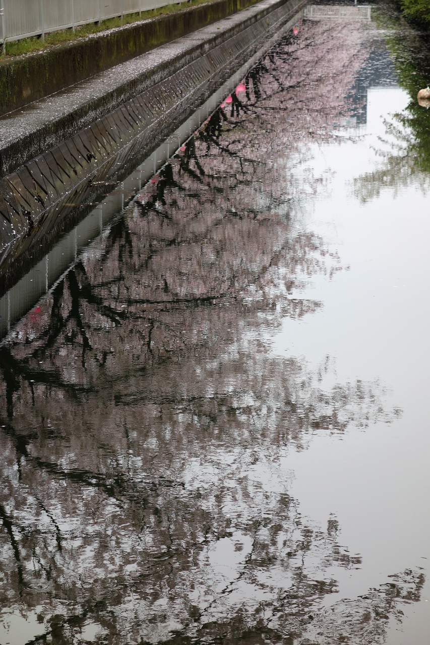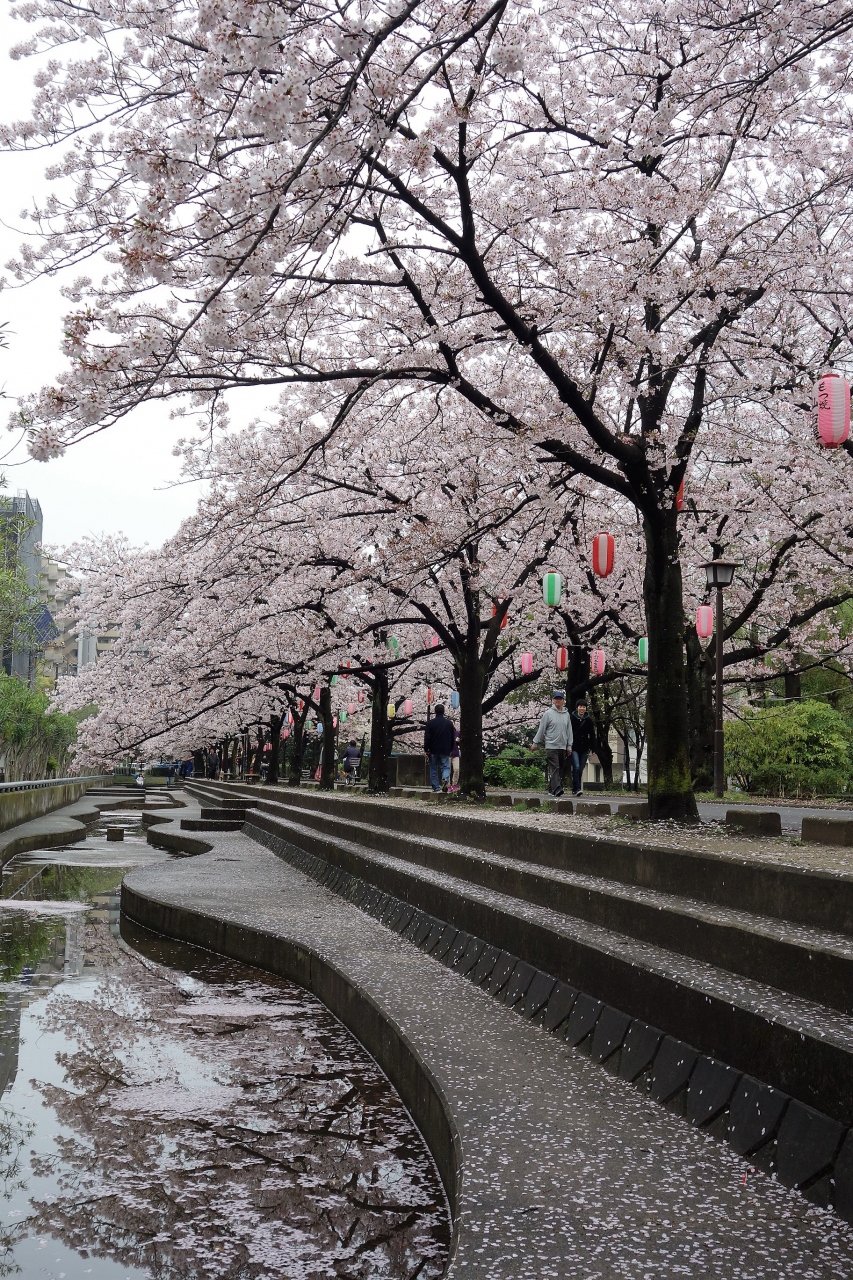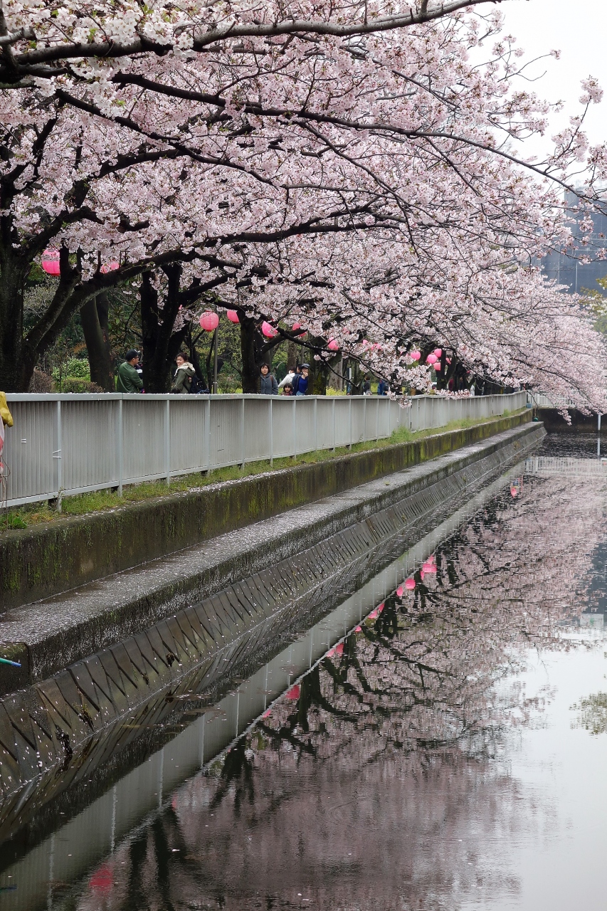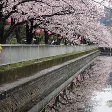 堀(川)に沿った親水公園の体で、水に桜が映ったり、花弁が浮いていたり、上を眺めるだけの花見じゃないのも一興でした。端から端まで歩くと結構な距離です。自分は往復したので少し疲れました。