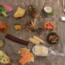 15種の前菜はいろんな野菜が趣向を凝らした味付けで調理されていて、