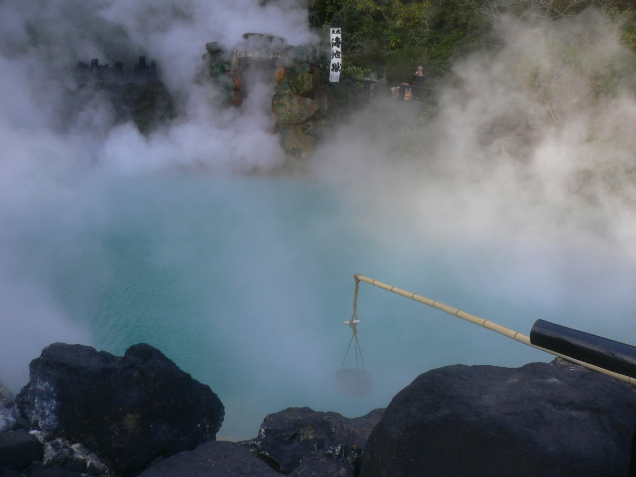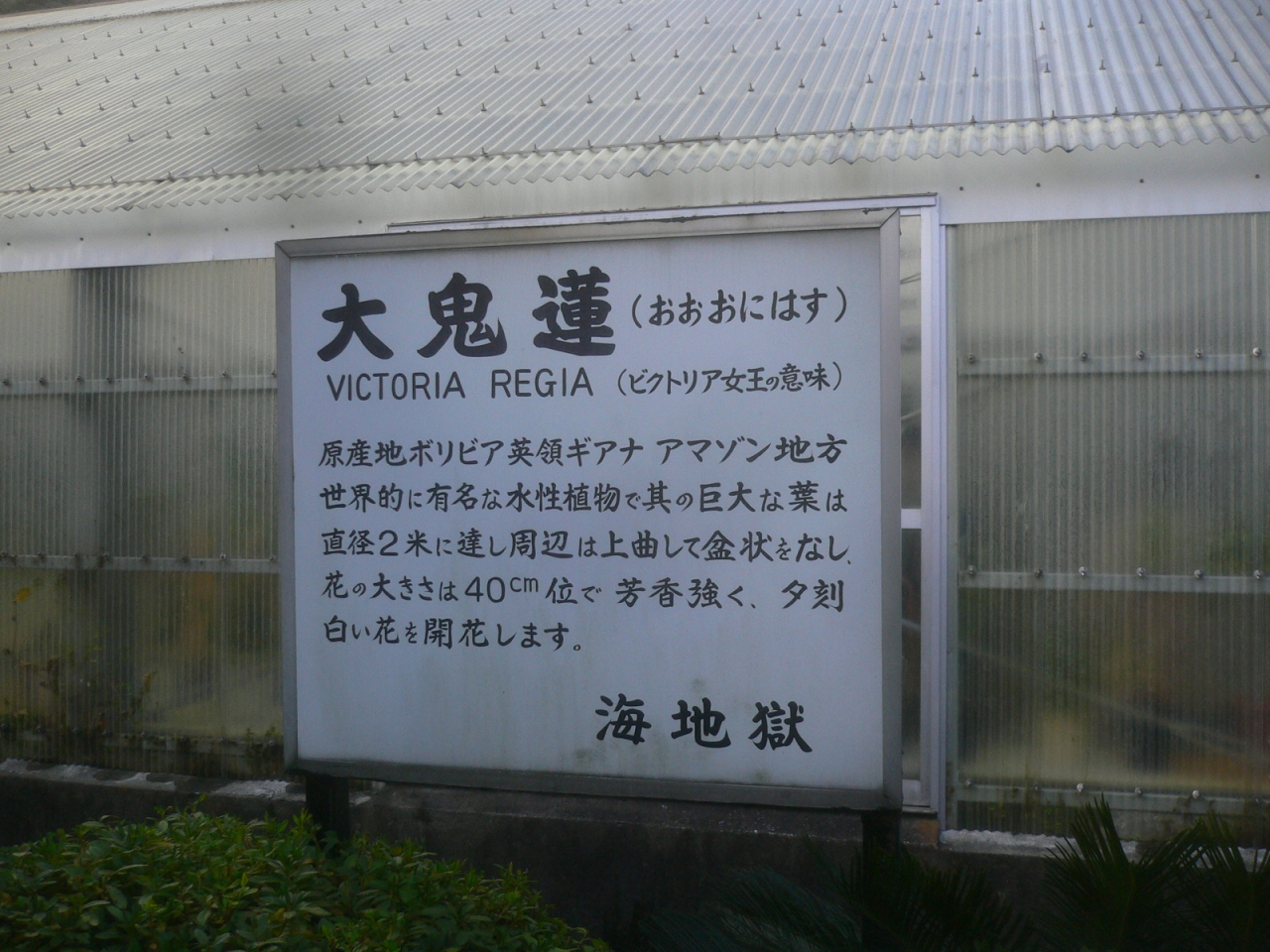 かまど地獄の湯から、比較的近い”海地獄”は、海のように青で、この名が付いたのでしょう、沢山ある地獄湯めぐりで、ここには、温室で蓮が咲いてあり、記念物になっていました。地獄湯めぐりは、手軽に廻れる観光スポットでした。