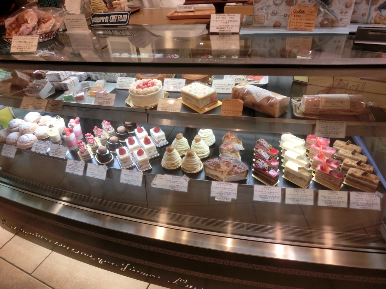 改札に入る手前にある食品店の中の小さなケーキコーナー。