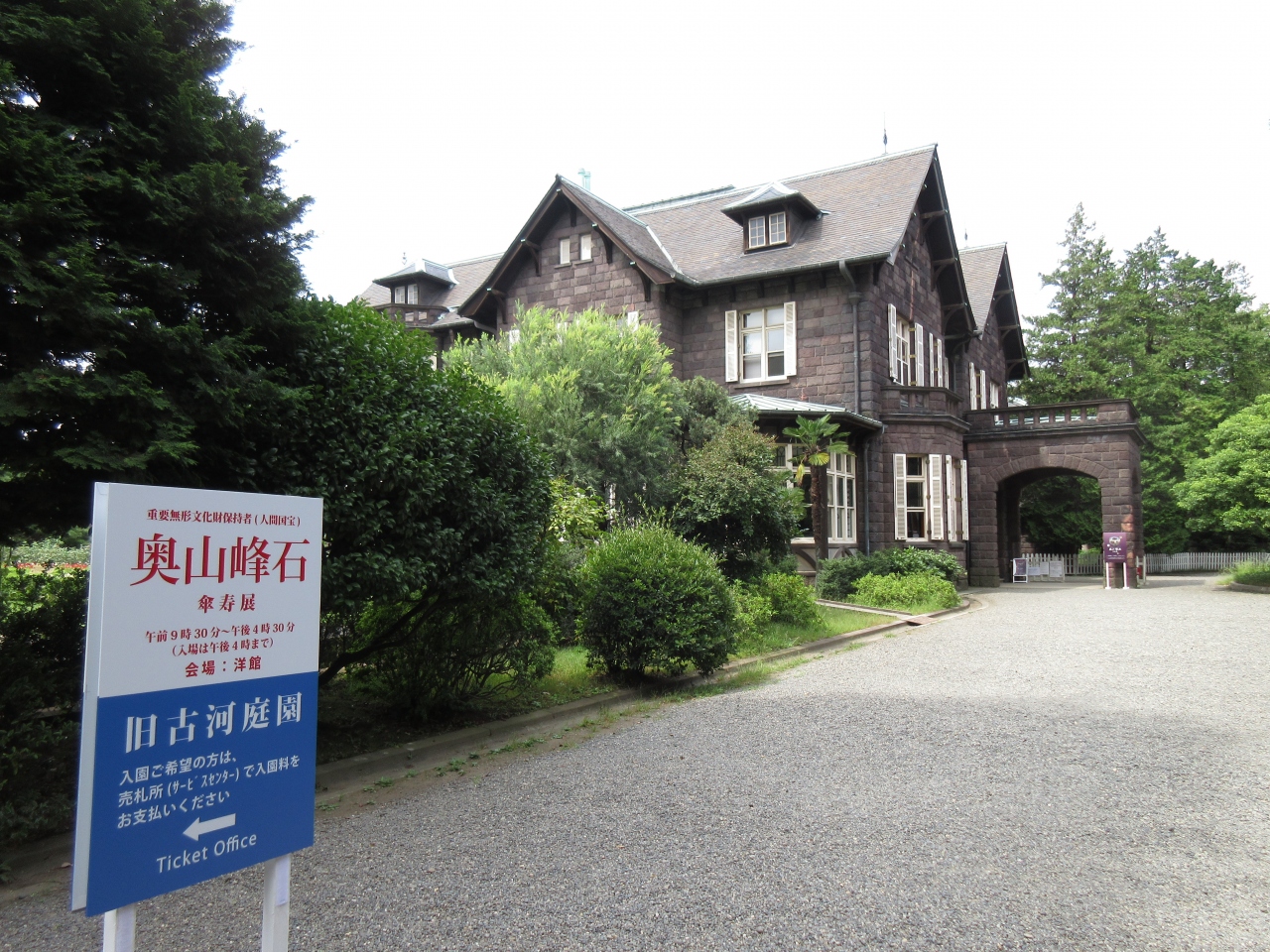 庭園内にある洋館で、8月26日から9月3日目で1週間にわたり、人間国宝・奥山峰石先生の傘寿を記念した展覧会が開かれました。これまで先生が製作した鍛金作品が数多く展示されていました。花をモチーフにした鉢や水指、器など、時間をかけ丁寧に粘り強く向き合った作品ばかりで心を打たれました。かつて先生からいただいたワイングラスが10万円もすることを知りびっくりしてしまいました。先生の作品は9月23、24日に北とぴあで行われる北区伝統工芸展でも見ることができます。