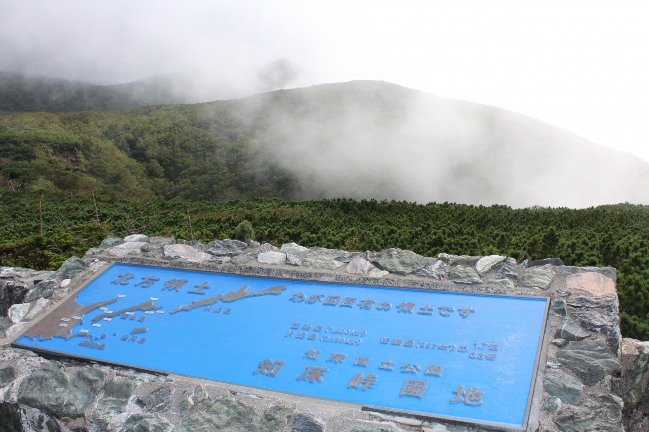 斜里町ウトロと羅臼町を結ぶ知床横断道路の頂上、知床連山の尾根筋にあたる標高738mの峠で、ドライブコースとしても人気が高いそうですが、天候に恵まれず、羅臼岳も北方領土の国後島も雲に隠れて全く見えませんでした。