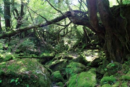 屋久島に写真仲間と撮影旅行に出かけ朝早くから白谷雲水峡に入山し、写真を撮りながらゆっくりと登って、通常の倍ぐらいの時間を要して”苔むす森=もののけ姫の森=”に着きました。白谷雲水峡の中でも周囲一面が苔に囲まれた一角で、もののけ姫のモデルとなったところです。残念なことは今年は雨が少なく(帰った3日後からよく降ったそうですが)苔の色が悪かったことです。